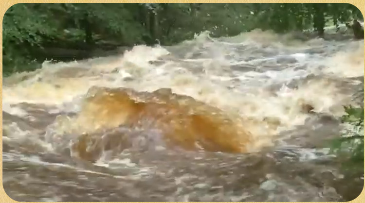 De Hoëgne kort voor Pont de Belleheid met een snel stijgend waterpeil op 14 juli 2021. Geen watervallend beekje meer
