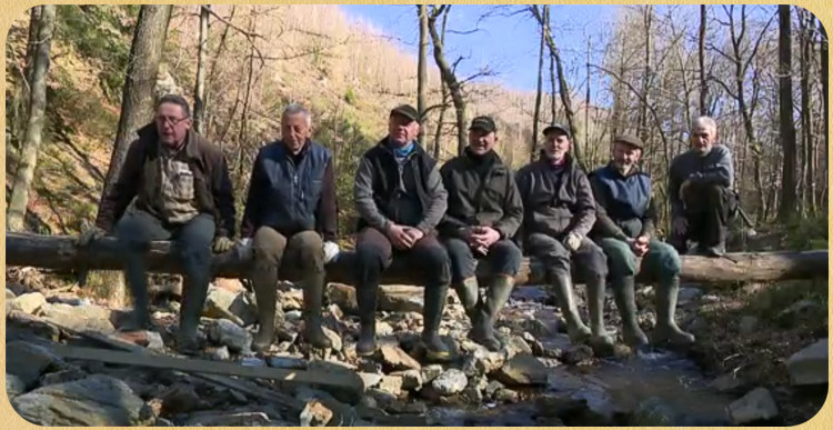 Enkele Maandagvrijwilligers bij alweer een nieuw afgewerkte (en verhoogde) wandelbrug. (Beeld Sart Tourisme)