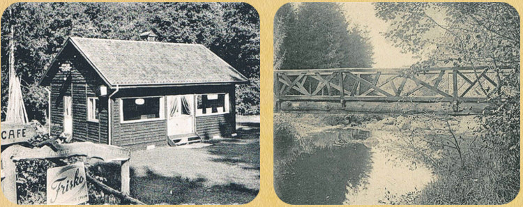 Met de eerste wandelaars kwamen ook snel toeristische faciliteiten bij de Pont de Belleheid. Het eerste café-restaurant kwam er al voor 1910, de 'Chalet des Cascades' (zie vorige pagina bij artikel nr 12). Tijdens het interbellum werd Hotel-café-restaurant 'Pont de Belleheid' gebouwd (ingekleurde foto). Het gebouw staat er nu nog als Restaurant 'Le Petit Normand'.