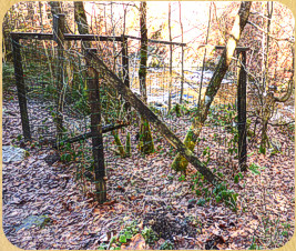 'site du chêne rustique' ('de rustieke eik') en enkele m² afgerasterd terrein waarop een paar jonge eiken proberen te overleven. Waarover gaat het? Eeuwenlang stond hier een dikke eik. Al in de tijd dat op initiatief van Léonard Legras het Hoëgnepad werd aangelegd, had deze stokoude eik zijn laatste levensfase bereikt. De dikke stam stak nog met een uitstekende tak boven de Hoëgne maar van een fiere stevige eik was toen al lang geen sprake meer. De rustieke eik met zijn rare en fotogenieke vorm was wel onderwerp op veel postkaarten met Hoëgne-zichten die voor WO II werden verspreid.
