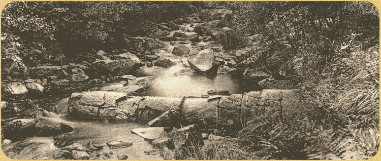 De verdwenen Pont des Cascatelles rond 1905, een wild 'schilderachtig ' hoekje