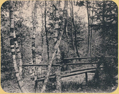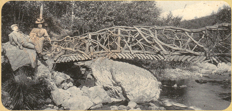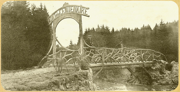 De oorspronkelijke Pont du Renard met een hekwerk van takkenweefsel, begin 20ste eeuw