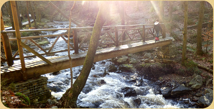 eindigt onze historische wandeling over de Promenade de la Hoëgne. Er is echte nog meer te beleven als je de Hoëgne verder stroomafwaarts volgt, over meer wandelbruggen en met ondermeer resten van oude nederzettingen van de ambachtelijke ijzernijverheid. Of je kunt de Hoëgne nog verder blijven volgen naar de oude dorpskern van Polleur... allemaal voor een andere keer.