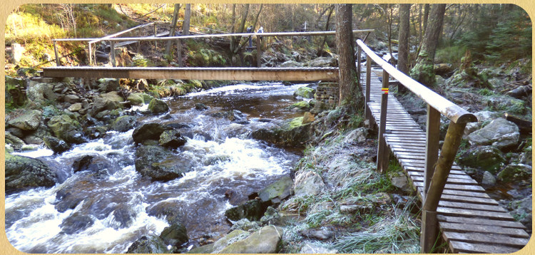 Pont du Renard. Nog wat verder langs de rechteroever komen we bij het volgende houten brugje, de