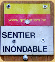 Zowat 700 meter voorbij de Waterval 'Leopold II' komen we langs een over de jaren heen wat verweerd bordje met de tekst