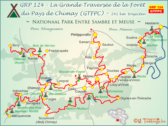 campings als aanvulling op de bivakplekken. Er zijn er te Chimay, Matagne-la-Petite, Vodelée en Olloy-sur-Viroin.