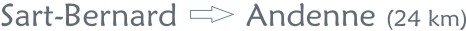 > Het is blijkbaar onvermijdelijk om via de stad Namen te passeren indien je vanuit Andenne met openbaar vervoer Sart-Bernard wil bereiken of vv. Zo ben je dus toch een uur à anderhalf uur onderweg. Het treinstation voor Andenne ligt eigenlijk op de noordelijke Maasoever, te Seilles, zodat je nog een 2 km te voet moet tot het start- of eindpunt van GRP 575 bij de kapittelkerk van Andenne. Ook als je per bus reist, lijkt de passage via de stad Namen of Jambes nog de beste mogelijkheden te bieden. Gebruik de treinplanner van de NMBS of de busplanner van TEC. Onderweg is er horeca te Goyet (enkel 's avonds open!).