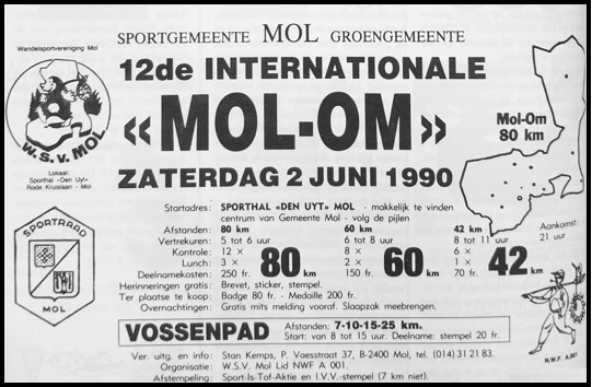 > In het verlengde van die erkenning als Streek-GR kreeg Mol-Om ook een volwaardige wandelgids met topografische kaarten in 1990, samengesteld door GR-medewerker Freddy Tuerlinckx. Een handig boekje met kaarten van 64 bladzijden, te koop voor 170 franken.