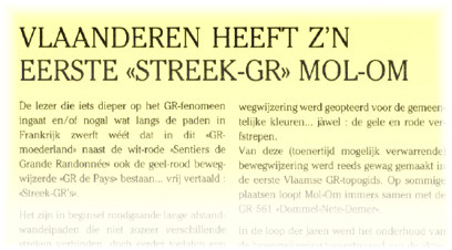 > In het ledenblad van Grote Routepaden (1988) lezen we over de nieuwe GR-aanwinst: "Streek-GR Mol-Om zal de geschiedenis ingaan als het eerste pad van die aard buiten Frankrijk. Kant en klaar afgeleverd door enthousiaste werkers met zin voor realiteit én gevoel voor verantwoordelijkheid want WSV Mol blijft instaan voor onderhoud van het pad...een schoolvoorbeeld van samenwerking waarvoor we onze Molse vrienden enkel kunnen danken."