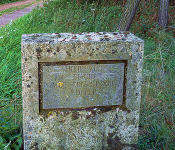 > Het verhaal ontging ook Koen Peters en Steven Geukens niet, twee amateur-archeologen. Na grondig opzoekwerk konden ze meer precieze informatie vinden. Op die basis trokken ze er op uit met de metaaldetector eind 2010, op enkele kilometers van waar nu het monument staat. In De Standaard deden ze hun verhaal: