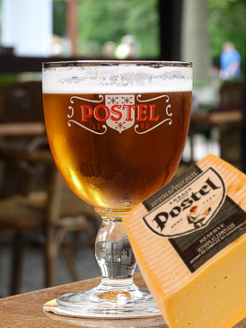 > Postel-bier is niet echt origineel, de abdij verhult niet dat het bier wordt gemaakt door brouwerij De Smedt (van Heineken) in het Vlaams-Brabantse Opwijk. De artisanale Postelse abdijkaas daarentegen wordt wel hier in de abdij gemaakt, sinds 1947. Om je monnikenmaal kompleet te maken kan je ook nog Postelbrood kopen. Ter plaatse kan je al die produkten kopen in de abdijwinkel. Wie geïnteresseerd is in kruiden moet zeker ook eens door de kruidentuin van de abdij lopen.