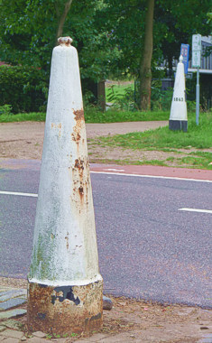 Grenspaal 195, hier nog in slechte staat, korte tijd voor hij werd gerestaureerd in 2011.