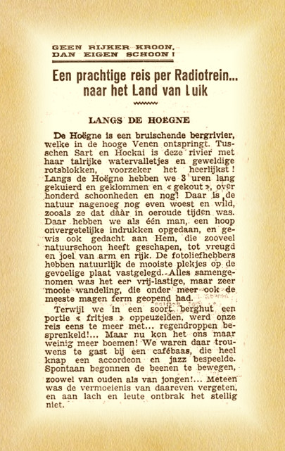 Op reis naar de Hoëgne in 1937 per Radiotrein...(Krant Het Nieuws van den Dag)