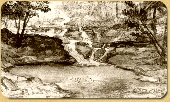Charles-Denis De Beaurieux (°1653 - †?)tussen de jaren 1691 en 1701 al een vijftiental tekeningen in Chinese inkt van de watervallende Hoëgne.