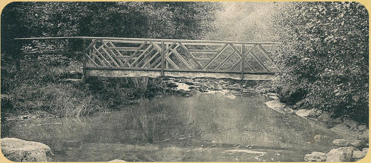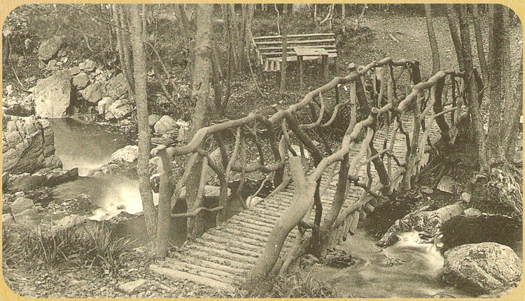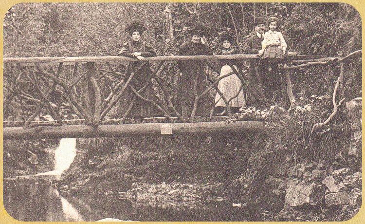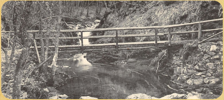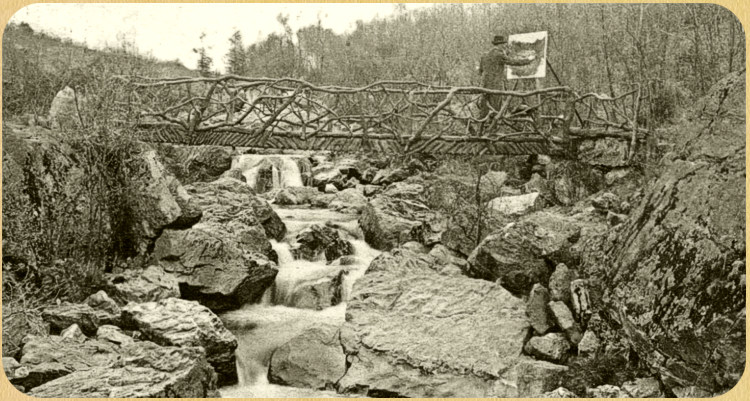 De oorspronkelijke Pont du Renard met een hekwerk van takkenweefsel, begin 20ste eeuw