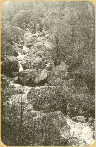 De verdwenen Pont des Cascatelles rond 1905, een wild 'schilderachtig ' hoekje