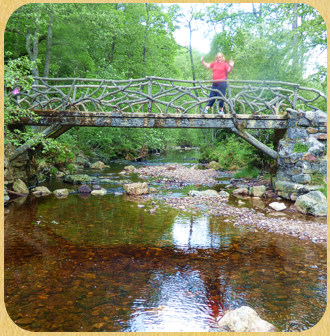 Pont du Renard ook een rustbank en tafeltje geplaatst. Nogal wat van die eerste wandelbruggen werden oorspronkelijk voorzien van leuningen in een decoratieve rustieke stijl van takkenweefsel. In latere decennia werden de vervangende wandelbruggen opgebouwd met een puur functionele metalen of houten brughek en -leuning.