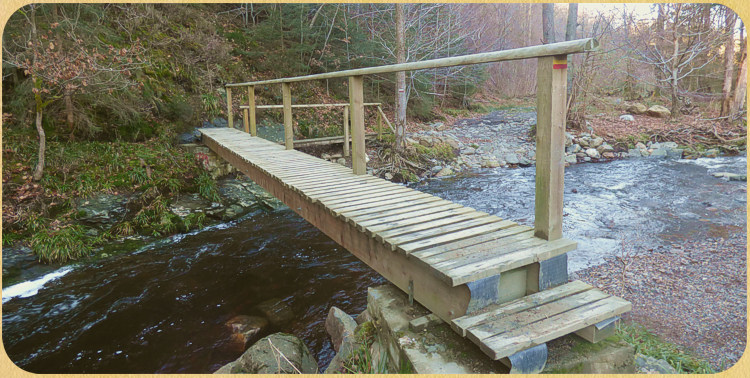 Pont du Renard. Nog wat verder langs de rechteroever komen we bij het volgende houten brugje, de