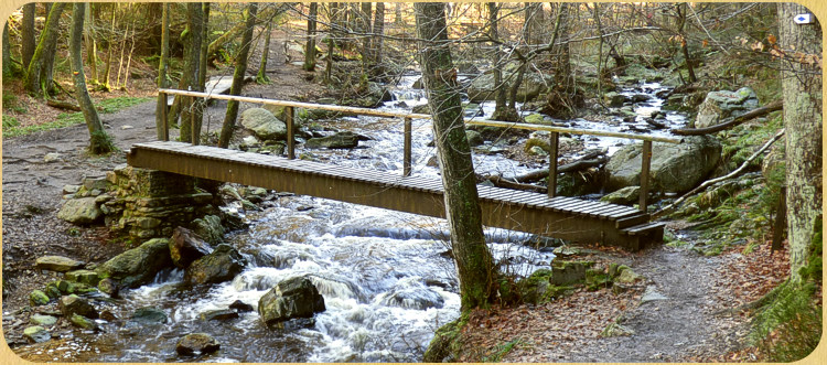 eindigt onze historische wandeling over de Promenade de la Hoëgne. Er is echte nog meer te beleven als je de Hoëgne verder stroomafwaarts volgt, over meer wandelbruggen en met ondermeer resten van oude nederzettingen van de ambachtelijke ijzernijverheid. Of je kunt de Hoëgne nog verder blijven volgen naar de oude dorpskern van Polleur... allemaal voor een andere keer.